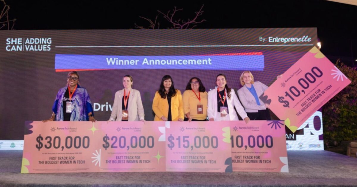 وأُطلقت جائزة “Aurora Tech” عام 2020 بمبادرة من إندرايف لدعم الشركات الناشئة التي تقودها نساء ويجمع نشاطها بين الابتكار والأثر الإيجابي، لتتطور خلال السنوات الماضية إلى منصة مؤثرة تُعلي من شأن الأصوات النسائية الأقل تمثيلًا في عالم التكنولوجيا. وقد شهدت نسخة 2025 إقبالًا غير مسبوق، حيث تلقت 2,018 طلبًا من 116 دولة، ما يعد ضعف عدد الطلبات المسجلة في العام السابق، وجاءت المتأهلات للنهائيات من مناطق متنوعة شملت الشرق الأوسط وشمال إفريقيا، وأمريكا اللاتينية، وآسيا الوسطى، ومنطقة آسيا والمحيط الهادئ، بمشروعات تغطي مجالات متعددة منها التكنولوجيا الصحية، والذكاء الاصطناعي، والتكنولوجيا المالية، والتعليم التقني، والتكنولوجيا الزراعية وغيرها.