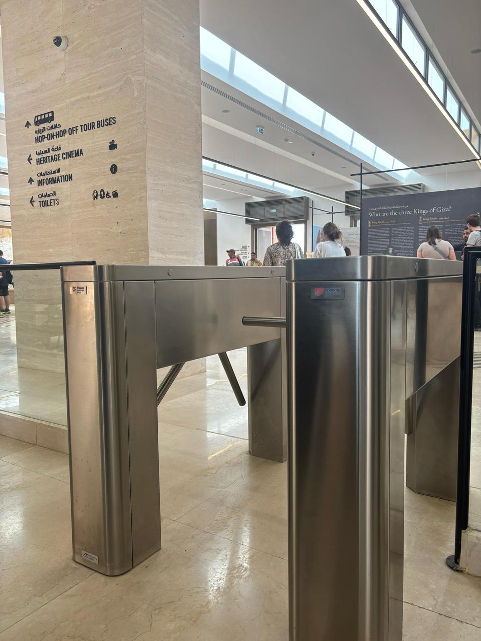 كما تساهم شركة “إي أسواق مصر” أيضاً، في تطوير وتسهيل خول الزوار من خلال بوابة العظيمة بالأهرامات بسلاسة من خلال تشغيل 12 بوابة إلكترونية بأحدث التقنيات مخصصة لدخول الزوار وتشمل البوابات ماسحًا ضوئيًا للرموز الشريطية أو رموز الاستجابة السريعة (QR) بالإضافة إلى القارئ اليدوي موزعة على11 بوابة إلكترونية مخصصة لدخول الزوار، وبوابة مخصصة لدخول ذوي الهمم، بهدف تسهيل إجراءات الدخول لجميع الفئات بما يتماشى مع معايير الإتاحة والتكامل المجتمعي.