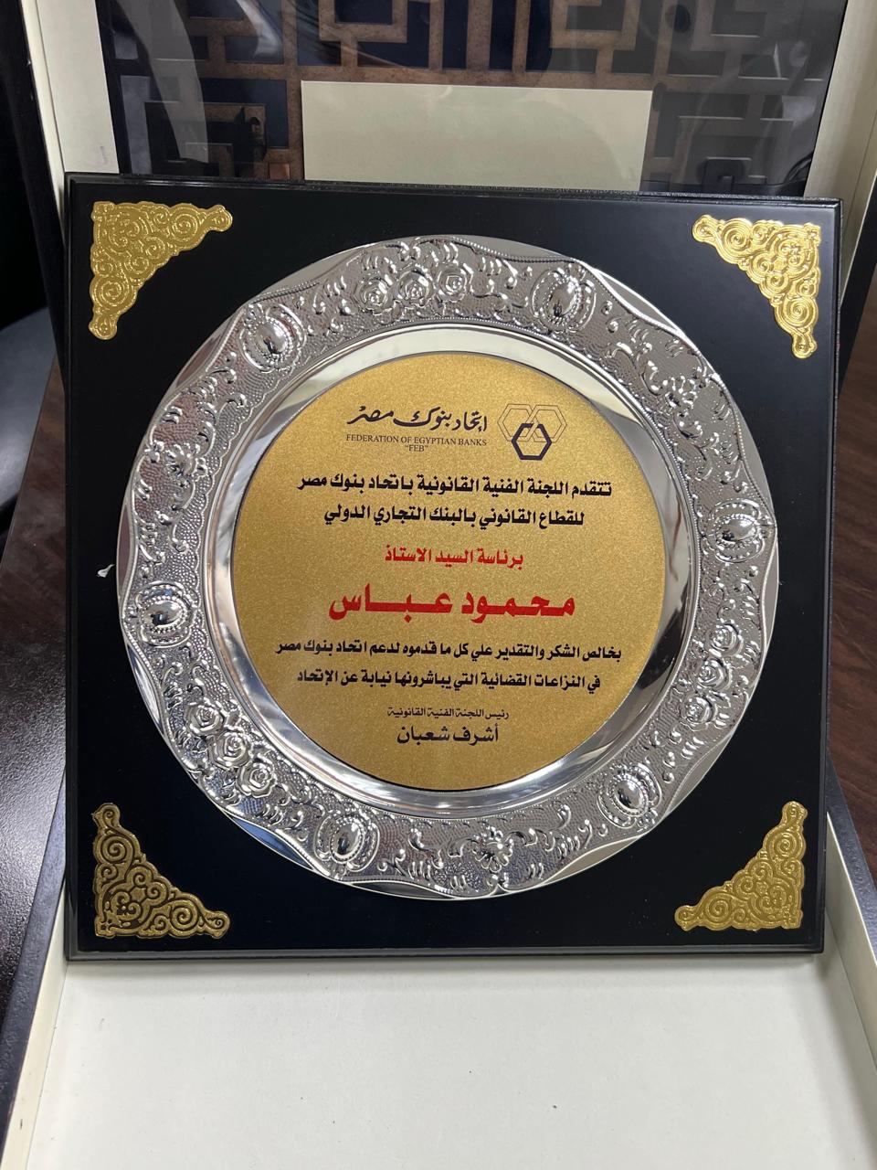 وقد جرى التكريم خلال اجتماع اللجنة الفنية القانونية لاتحاد بنوك مصر، بحضور محمد شعبان وكيل محافظ البنك المركزي المصري، و أشرف شعبان المستشار القانوني للاتحاد، وعدد من كبار مسؤولي القطاعات القانونية بالبنوك.