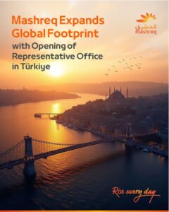 أعلن المشرق، المؤسسة المالية الرائدة في منطقة الشرق الأوسط وشمال إفريقيا، عن افتتاح مكتب تمثيلي له في تركيا، في خطوة تعزز التزامه القوي بدعم المؤسسات المالية والشركات التركية.