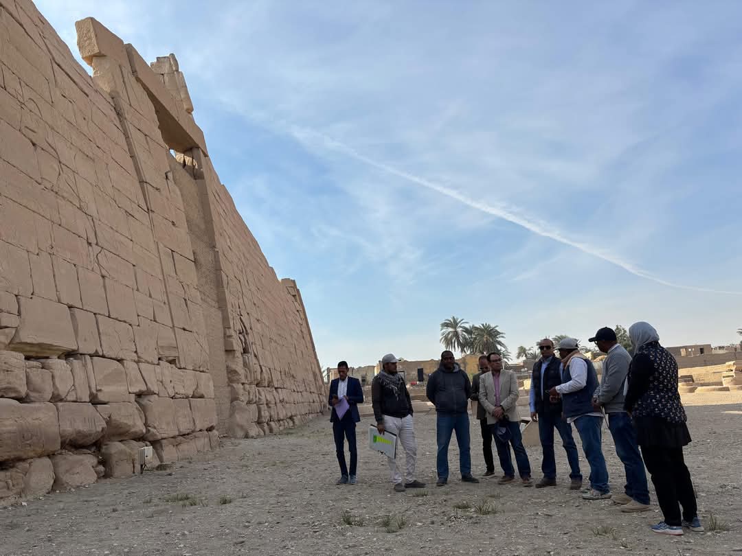 ومن جانبه قال الدكتور عبد الغفار وجدي مدير عام آثار الأقصر، أن البعثة بدأت في أعمال الحفائر العلمية حيث تم اختيار بعض الجسات الأثرية حول الصرح الأول، والتي تم الكشف بها عن أساسات الصرح الأول وأساسات حجرية للسور الخارجي للفناء الأول للصرح الأول، بالإضافة إلى الكشف عن بعض الكتل الحجرية المنقوشة والتي تمثل واجهة الصرح الأول وتوثيقها وتسجيلها.