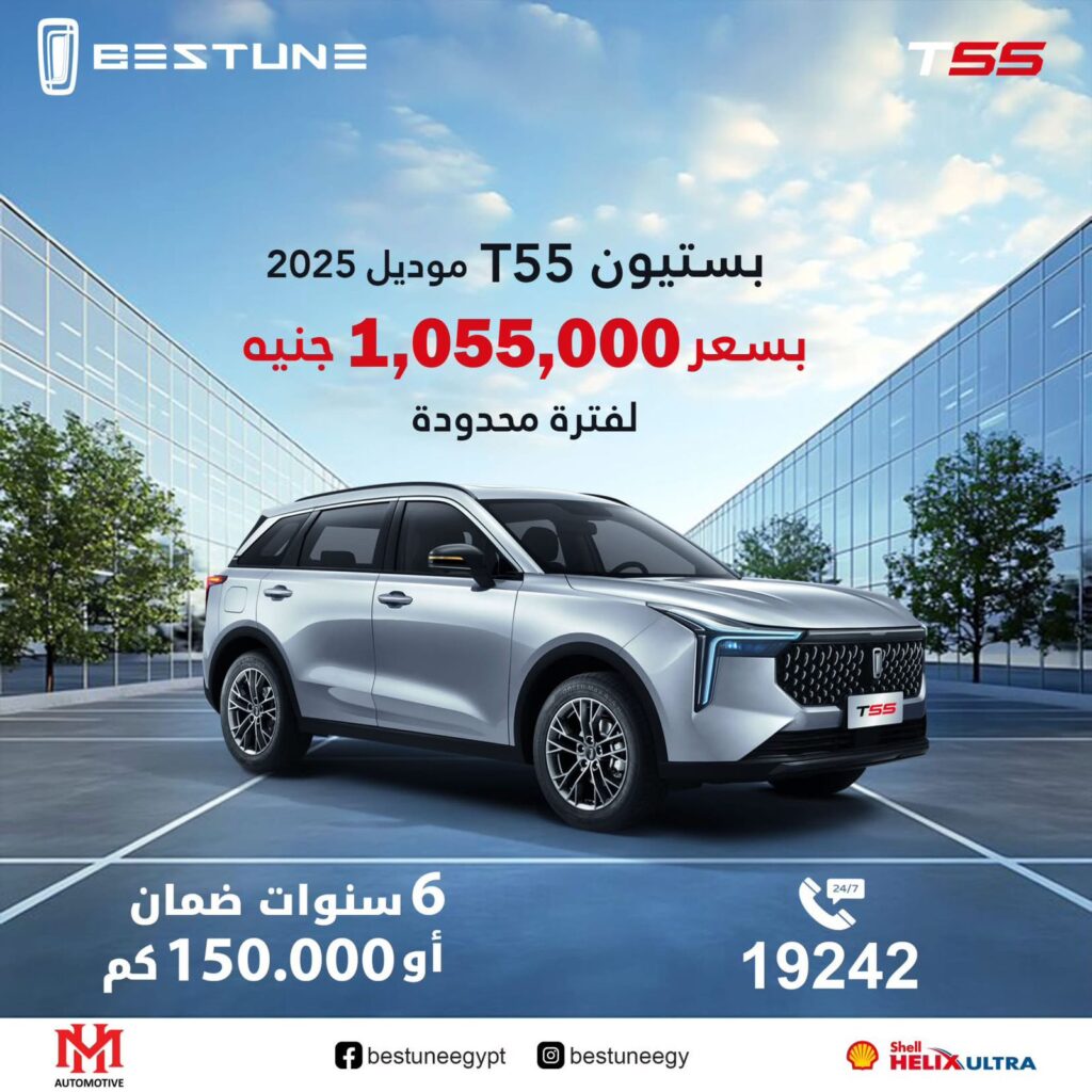 في خطوة جديدة لتعزيز حضورها في السوق المصري، أعلنت شركة Bestune Egypt عن عرض حصري لفترة محدودة على سيارة بستيون T55 موديل 2025، بسعر مميز يبلغ 1,055,000 جنيه مصري فقط. هذه العروض تتيح للعملاء الفرصة لاقتناء سيارة SUV فاخرة تجمع بين التكنولوجيا المتطورة، الأداء المتميز، والراحة القصوى، وهي الميزات التي تجعلها خيارًا مثاليًا لعشاق السيارات الفاخرة في مصر.