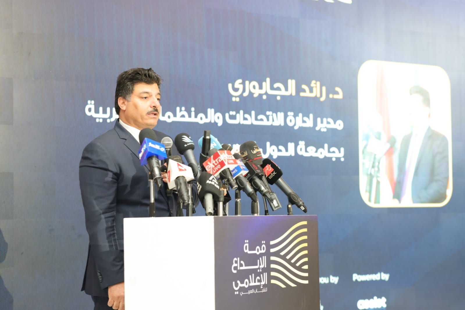 أكد الدكتور رائد علي صالح الجبوري، وزير مفوض ومدير إدارة المنظمات والاتحادات العربية بقطاع الشؤون الاقتصادية في الأمانة العامة لجامعة الدول العربية، أن الإعلام العربي يواجه تحديات هائلة، مشدداً على ضرورة أن تخرج قمة الإبداع الإعلامي للشباب العربي بتوصيات علمية وعملية وواقعية تتضمن حلولًا لتلك التحديات.