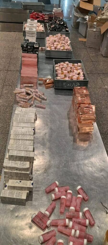 تمكن رجال الجمارك بمطار القاهرة الدولي برئاسة الدكتور ماجد موسي رئيس الإدارة المركزية والدكتور أحمد سعد عبد المطلب مدير عام الإدارة العامة لجمارك الركاب بالمبنى رقم ٢ من ضبط وتحرير ٨ محاضر ضبط المتنوعة لكمية من المواد المخدرة والأسلحة البيضاء ومستحضرات التجميل والبضائع المتنوعة بالمخالفة لأحكام قانون مكافحة المخدرات وتنظيم استعمالها والاتجار فيها رقم 182 لسنة 1960 وقانون الأسلحة والذخائر رقم 394 لسنة 1954 وقانون مزاولة مهنة الصيدلة رقم 127 لسنة 1955 وقانون الجمارك رقم 207 لسنة 2020 وقانون الإستيراد والتصدير رقم 118 لسنة 1975.
