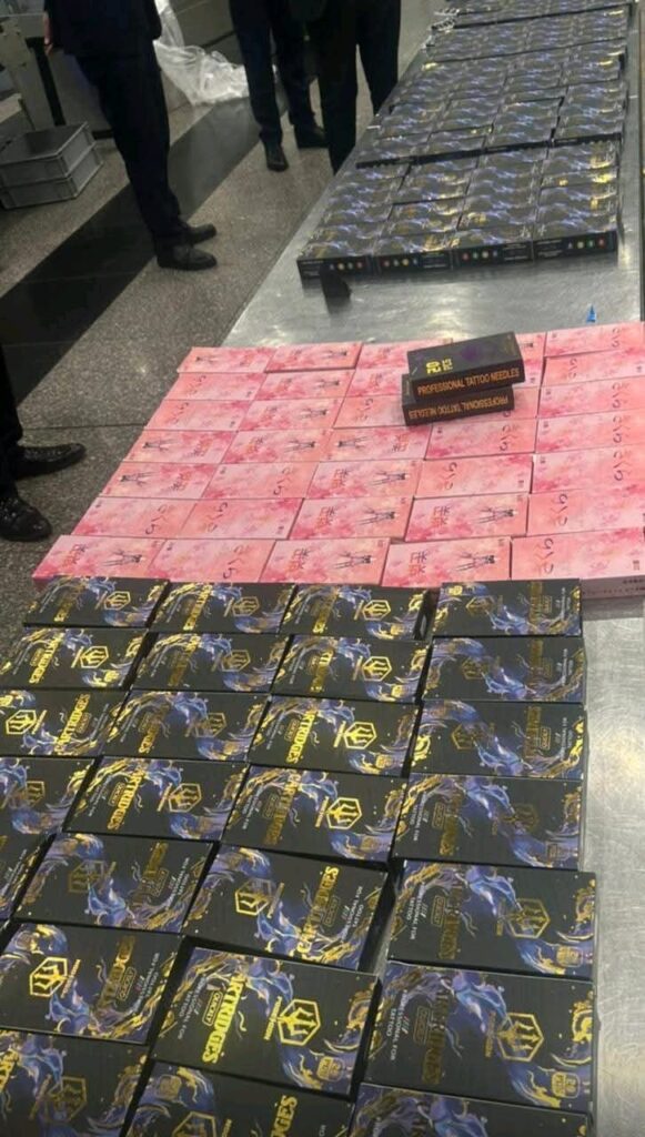 وحرر رجال الجمارك بالإدارة الاولي برئاسة مصطفي حلمي الجندي مدير الإدارة ونائبه أحمد عمر كحك محضر ضبط جمركي رقم ٩٦ لسنة ٢٠٢٥ ضد راكب أجنبي حاول تهريب أربعة الاف ابرة رسم “تاتو” ضم فريق الضبط كل من أحمد خيري و حسام سليمان و محمود مصطفي مآمير الجمرك ومن ادارة الفحص بالأشعة إبراهيم كمال و محمد جمال و فرج حمدي تحت اشراف جورج الفونس مدير الحركة.