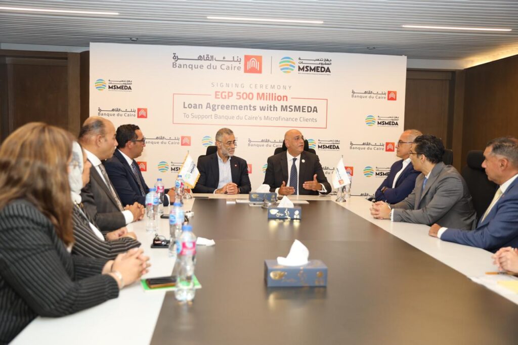 وقع جهاز تنمية المشروعات المتوسطة والصغيرة ومتناهية الصغر وبنك القاهرة عقدين جديدين بإجمالي تمويل من الجهاز بقيمة تبلغ 500 مليون جنيه، بهدف تمويل المشروعات متناهية الصغر في جميع محافظات الجمهورية من خلال بنك القاهرة، حيث وقع العقدين الأستاذ محمد مدحت نائب الرئيس التنفيذي لجهاز تنمية المشروعات المتوسطة والصغيرة ومتناهية الصغر والأستاذ أيمن خطاب رئيس قطاع المؤسسات المالية ببنك القاهرة وذلك بحضور باسل رحمي الرئيس التنفيذي لجهاز تنمية المـشروعات وحسين أباظة العضو المنتدب والرئيس التنفيذي لبنك القاهرة ولفيف من قيادات الجهاز والبنك.