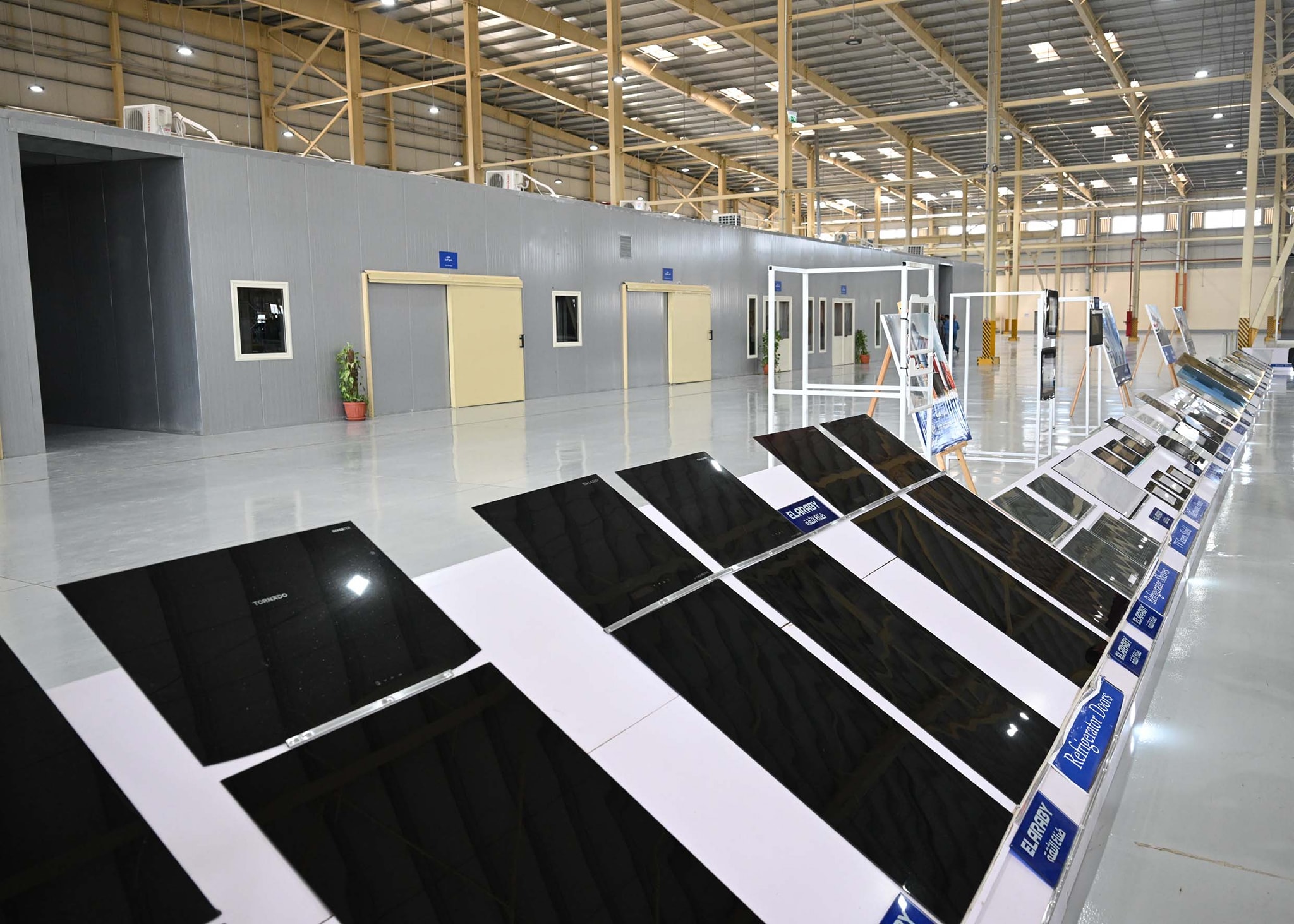 وشاهد رئيس الوزراء كذلك معرضاً لمنتجات تشكيل الزجاج التي تشمل الزجاج المستخدم في الأجهزة المنزلية والمعمار والسيارات والقطارات، وشهد أيضاً تجربة لاختبار تحميل الزجاج للأحمال عبر مرور سيارة على لوح زجاج، وتم عرض نموذج مصغر للزجاج المستخدم في الأبواب الالكترونية في محطات القطارات والمترو.