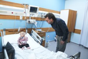وخلال الجولة، حرص مازن المتجول على زيارة عدد من المرضى داخل غرفهم، حيث تبادل معهم الأحاديث الودية والتقط الصور التذكارية، في أجواء غلبت عليها الطاقة الإيجابية والابتسامات التي ارتسمت على وجوه الأطفال وذويهم.