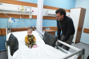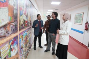 وخلال الجولة، حرص مازن المتجول على زيارة عدد من المرضى داخل غرفهم، حيث تبادل معهم الأحاديث الودية والتقط الصور التذكارية، في أجواء غلبت عليها الطاقة الإيجابية والابتسامات التي ارتسمت على وجوه الأطفال وذويهم.
