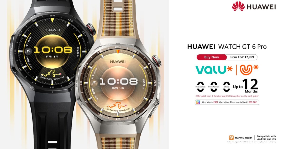 ولتحسين إمكانية الوصول بشكل أكبر، يمكن للعملاء شراء سلسلة HUAWEI WATCH GT 6 عبر ڤاليو بدون رسوم أو دفعات مقدمة، مع خطط دفع مرنة بدون فوائد واشتراك لمدة شهر مجاناً لمجموعة واجهات الساعة بقيمة 259 جنيه ،هذا العرض ساري من 2 أكتوبر حتى 30 نوفمبر على سعر الكاش في متجر هواوي الإلكتروني.