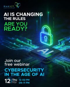 أعلنت شركة RAKICT، الرائدة في مجالات التدريب التقني والحلول الرقمية، عن إطلاق ندوة معرفية كبرى عبر الإنترنت تحت عنوان “الأمن السيبراني في عصر الذكاء الاصطناعي”، والتي تأتي استجابةً للتغيرات المتسارعة التي يفرضها التطور التكنولوجي على العالم الرقمي.