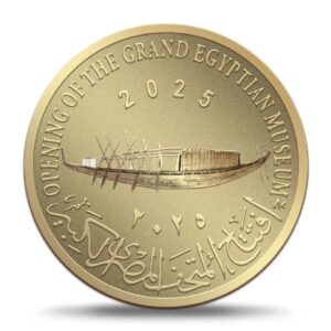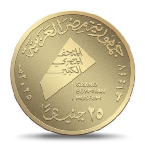 قال الدكتور شريف حازم مستشار الوزير للشئون الهندسية، إن العملات التذكارية للمتحف المصري الكبير تضم ٦ فئات من خام الذهب والفضة: «جنيه، ٥ جنيهات، ١٠ جنيهات، ٢٥ جنيهًا، ٥٠ جنيهًا، مائة جنيه»، تحمل كل منها تصميمًا فريدًا يبرز العناصر المعمارية والأثرية المميزة للمتحف، ومنها: «المسلة المعلقة، الواجهة والمدخل الرئيسي، مراكب الشمس، تمثال رمسيس، وقناع توت عنخ آمون الذهبي».