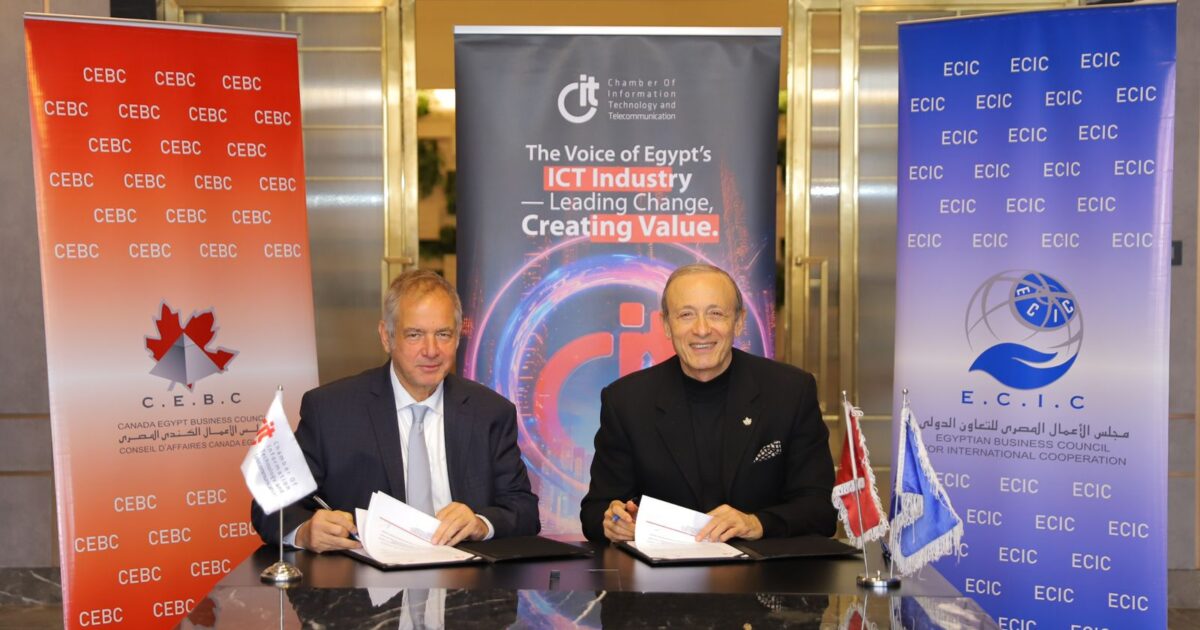 في خطوة محورية لتعزيز التجارة الدولية والتعاون التكنولوجي وقعت غرفة صناعة تكنولوجيا المعلومات والاتصالات المصرية CIT مذكرة تفاهم استراتيجية مع مجلس الأعمال الكندى المصرى ومجلس الأعمال المصرى للتعاون الدولي