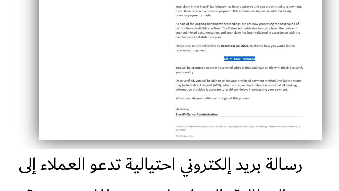 يستغل المهاجمون صرف التعويضات المزعومة لمنصة BlockFi المختصة في إقراض العملات الرقمية المشفرة، فيطلبون من الضحايا عبارات استرداد محافظهم الرقمية.