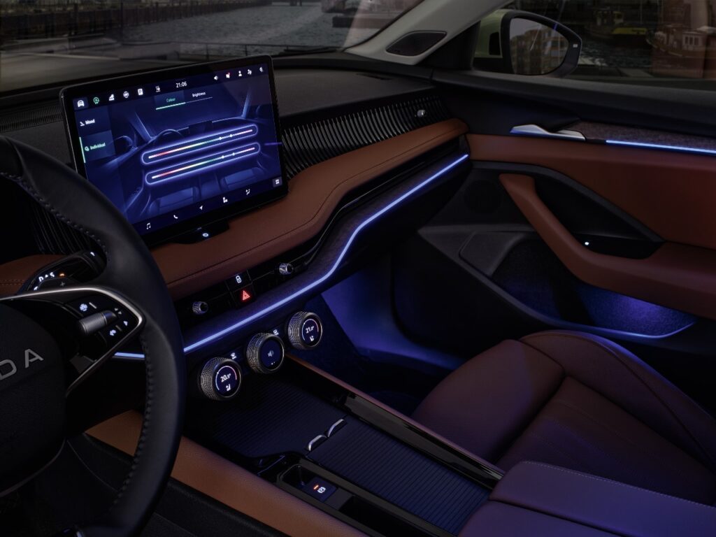 وتحتوي المقصورة الداخلية لسيارة “Škoda Superb 2025” على مجموعة متكاملة من التجهيزات التي تعزز من الراحة والرفاهية، تشمل: إضاءة داخلية محيطة مع إضاءة سفلية أمامية وخلفية، مقاعد كهربائية للسائق والراكب الأمامي مزودة بدعم قطني وخاصية التدفئة المستقلة، ونظام تهوية ومساج للمقاعد الأمامية مع خاصية الذاكرة. كما يتوفر عجلة قيادة جلدية رياضية متعددة الوظائف مزودة بذراع لتغيير السرعة، وقفل أمان كهربائي للأطفال، إلى جانب شمّاسات أمامية مزودة بمرايا مضيئة. وتأتي السيارة بمساحة تخزين تبلغ 645 لتراً، ترتفع لتصل إلى 1,795 لتراً كحد أقصى عند طي المقاعد الخلفية، ما يوفر مرونة كبيرة سواء للاستخدام اليومي أو للرحلات الطويلة.