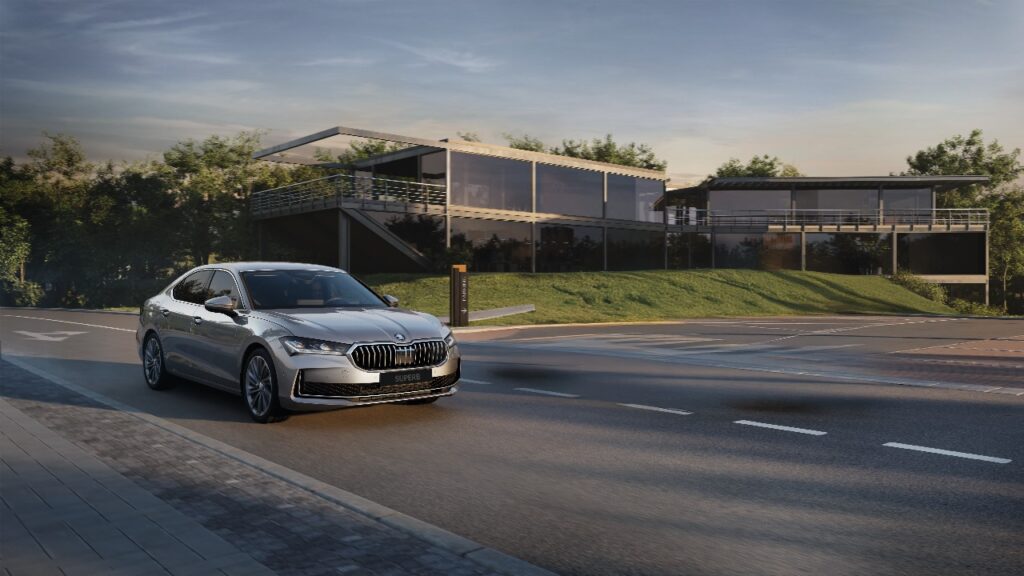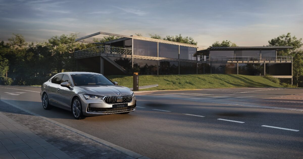 وتبرز “Škoda Superb 2025” بتصميم خارجي يعكس هوية سكودا المميزة، حيث تأتي الواجهة الأمامية بشبك عريض جريء ومصابيح حادة مزودة بتقنية “Crystallinium” ، بينما تمتد الخطوط الانسيابية للهيكل بسلاسة نحو الخلف لتمنح السيارة حضورًا قويًا وكفاءة ديناميكية هوائية عالية.