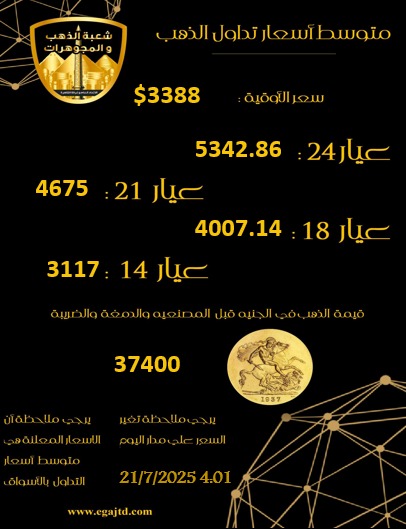 الرئيسيةاسواقمتوسط أسعار الذهب اليوم 21 يوليو