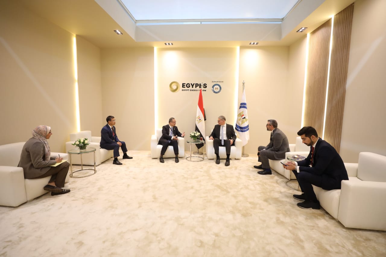 يواصل وزير البترول والثروة المعدنية لقاءته مع مسئولى كبريات شركات البترول والطاقة العالمية خلال فاعليات مؤتمر ايجبس 2025 ، حيث التقى المهندس كريم بدوى وزير البترول والثروة المعدنية مع كوينتن ديبيوشيرت الرئيس التنفيذي لشركة اكسنز