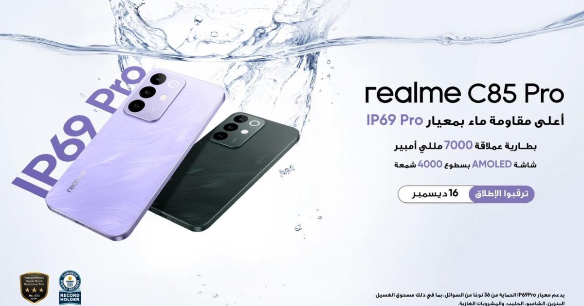 وتستعد ريلمي لإطلاق هاتف realme C85 Pro، الذي يعيد تعريف معايير المتانة في فئته. حيث يأتي الهاتف مزوّدًا بتقنية IP69 Pro المتقدمة لمقاومة الماء، مما يمنح المستخدمين مستوى جديدًا من الحماية ويتيح لهم استخدام هواتفهم بثقة في مختلف ظروف الحياة اليومية. ويعكس هاتف realme C85 Pro التزام ريلمي بتقديم تقنيات قوية وموثوقة للمستخدمين، بسعر مناسب يتيح لفئة أكبر الاستفادة من هذه المزايا المتقدمة.
