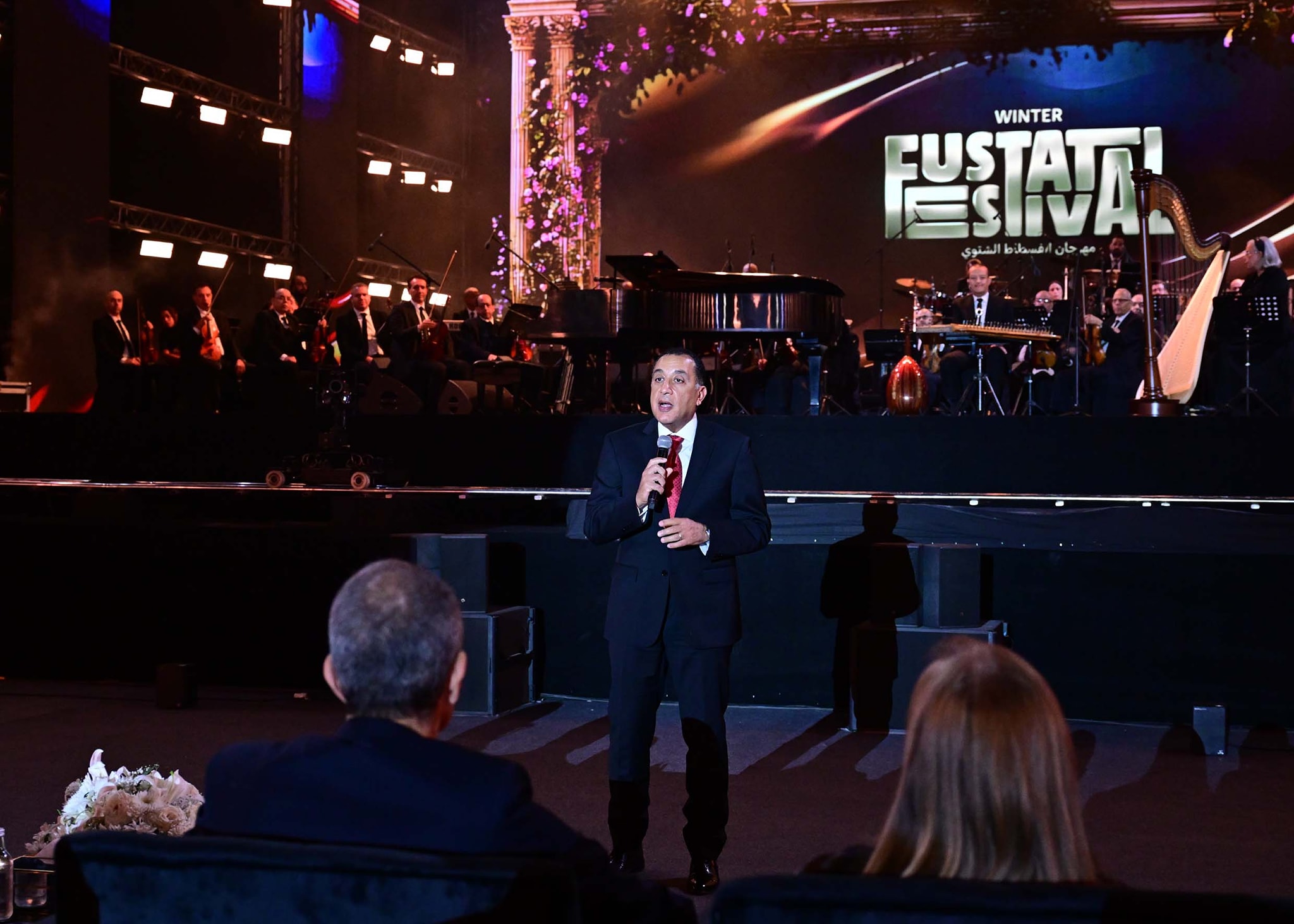 شهد الدكتور مصطفى مدبولي، رئيس مجلس الوزراء، مساء اليوم، تدشين مهرجان الفسطاط الشتوي الأول لعام ٢٠٢٥، الذي انطلق بأمسية رائعة للموسيقار الكبير عُمر خيرت على مسرح الأرينا، بحديقة تلال الفسطاط. وبهذه المناسبة، أدلى رئيس الوزراء بكلمة، استهلها بالترحيب بالحضور في تدشين مهرجان تلال الفسطاط الشتوي 2025، قائلاً: ارحب بكم جميعاً