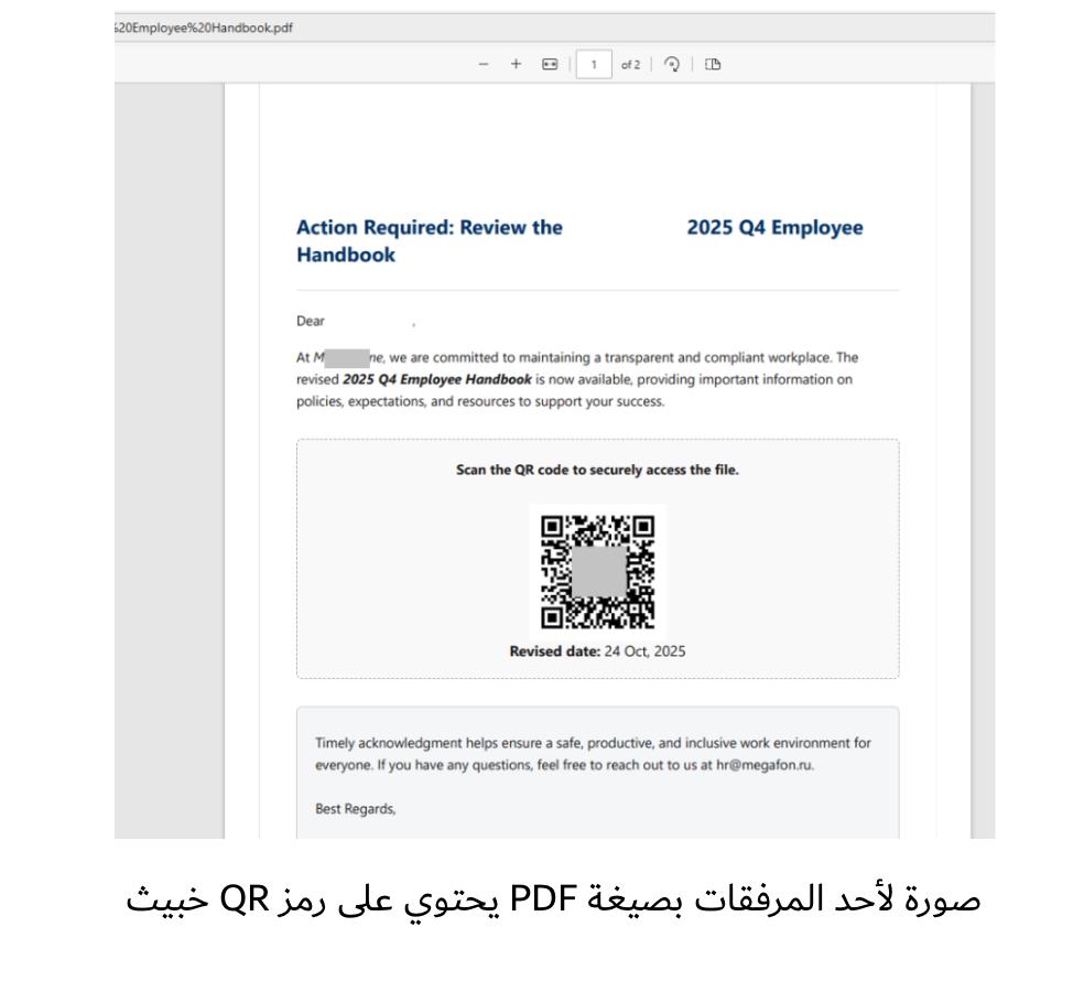 يعلق على هذه المسألة رومان ديدينوك، خبير مكافحة البريد العشوائي لدى كاسبرسكي: «تطورت رموز QR الخبيثة لتصبح من أشد أدوات التصيد الاحتيالية فعالية خلال العام، لا سيما إذا أخفيت ضمن ملفات PDF، أو استخدمت ضمن عمليات احتيالية تتظاهر بأنها مراسلات أعمال مشروعة مثل تحديثات الموارد البشرية. ويشير النمو الهائل في شهر نوفمبر إلى استغلال المهاجمين لهذه التقنية الرخيصة للتهرب من أدوات الحماية واستهداف الموظفين عبر الأجهزة المحمولة، حيث تنخفض مستويات الحماية مقارنة بالحواسيب. فمن دون تحليل متقدم للصور عند بوابة تسجيل البريد الإلكتروني وممارسات فحص آمنة، تظل المؤسسات معرضة لاختراق بيانات تسجيل الدخول وما يليها من اختراقات لاحقة»