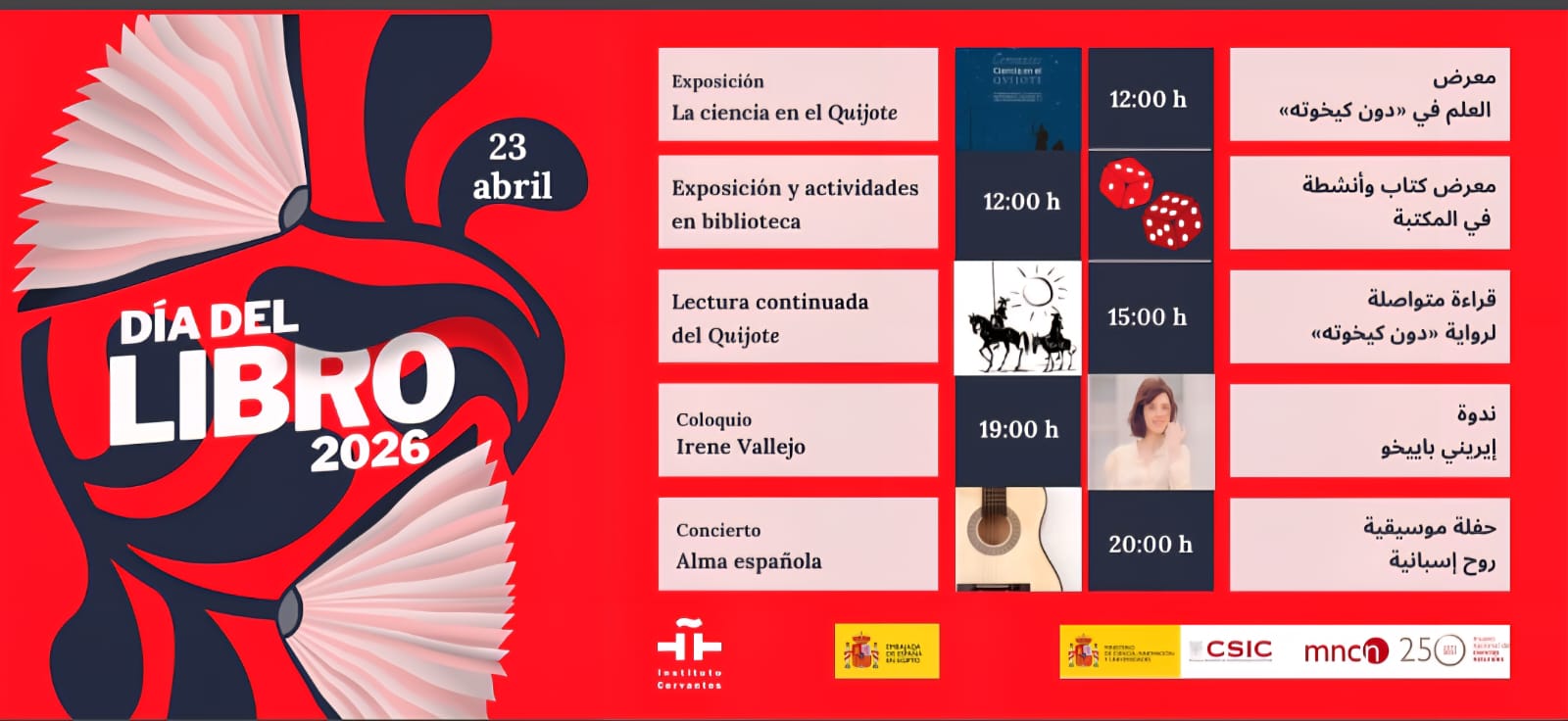 معهد ثربانتس بالقاهرة يحتفل باليوم العالمي للكتاب 2026 ببرنامج ثقافي موسيقي مميز وحوار مع “إيريني باييخو”