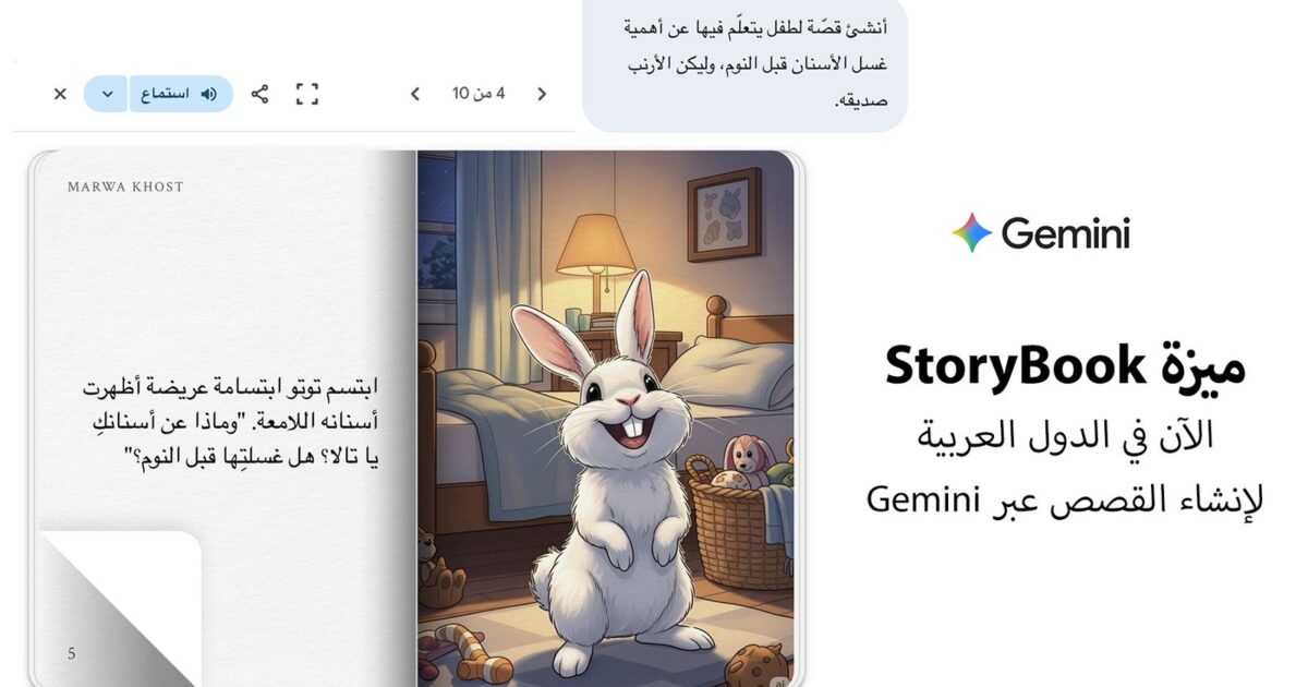 لكل محبّي القصص، تطلق Google اليوم ميزة جديدة باسم Storybook لكل مستخدمي المساعد الذكي Gemini في كافّة الدول العربيّة. تعمل هذه الميزة على تحويل الأفكار المعقدّة أو حتّى المبادئ المجتمعية الهامة إلى قصّة من عشر صفحات مليئة بالرسومات الغنية. هذه الميزة متاحة حاليًا على موقع الأداة، وقريبًا على تطبيق الموبايل.