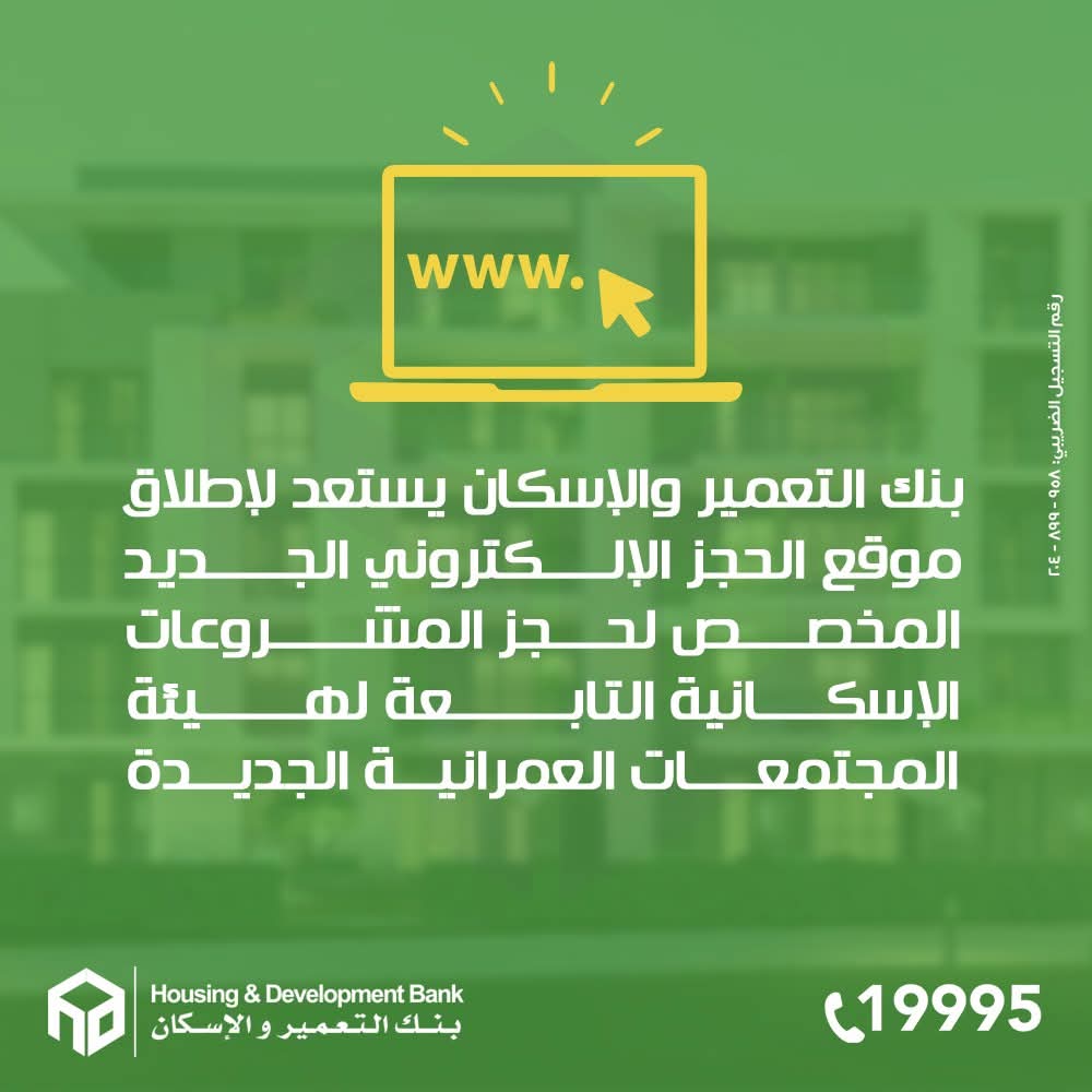 متابعة القراءةفي إطار خطة البنك الاستراتيجية لتطوير الخدمات الإسكانية، وبالتعاون المستمر والمثمر مع وزارة الإسكان والمرافق والمجتمعات العمرانية، يستعد بنك التعمير والإسكان لإطلاق الموقع الإلكتروني الجديد، والمتخصص في الحجز الإلكتروني للمشروعات الإسكانية التابعة لهيئة المجتمعات العمرانية. يُعد هذا التطوير خطوة محورية ضمن جهود البنك المستمرة لدعم خطة الدولة في التوسع العمراني،