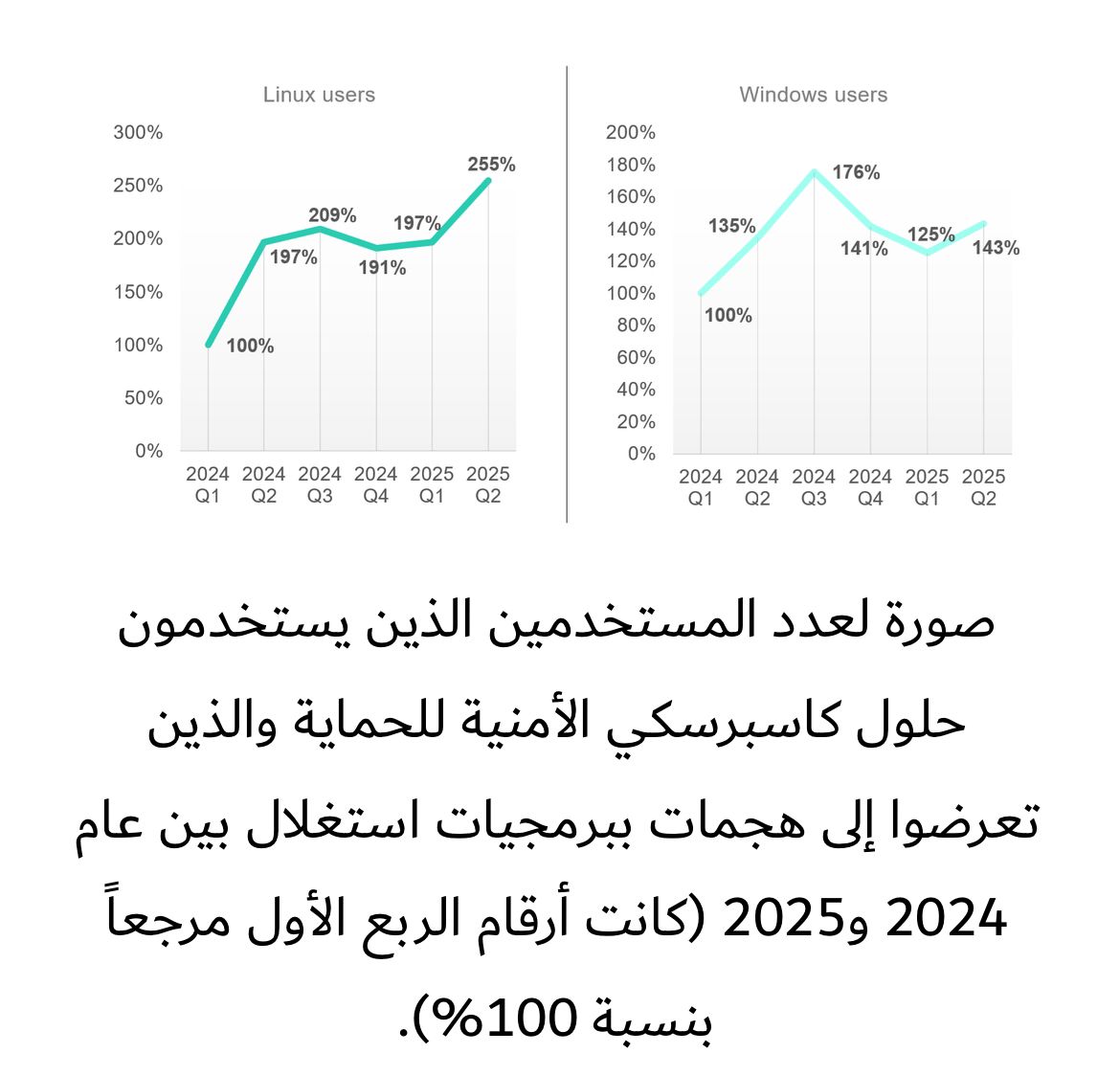 متابعة القراءةأظهرت بيانات جديدة من كاسبرسكي أن عدد مستخدمي نظامي ويندوز (Windows) ولينكس (Linux) الذين أصيبوا بهجمات برمجيات الاستغلال خلال النصف الأول لعام 2025 زاد مقارنة بعام 2024. كما زاد العدد الإجمالي للثغرات الأمنية المسجلة في النصف الأول من عام 2025، وفقًا لموقع cve.org، مقارنة بالفترات السابقة، حيث استخدم المهاجمون برمجيات