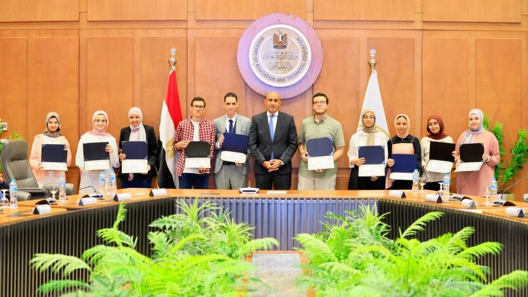 استقبل محمد عبد اللطيف، وزير التربية والتعليم والتعليم الفني، اليوم، أوائل شهادة إتمام الدراسة الثانوية العامة للعام الدراسي 2024/ 2025، ذلك بمقر الوزارة بالعاصمة الإدارية الجديدة، وذلك لتكريمهم لما بذلوه من جهد طوال العام الدراسي للوصول إلى أعلى مراكز التفوق. وكرم الوزير أوائل طلاب الثانوية العامة، وقدم شهادات تقدير، لأوائل