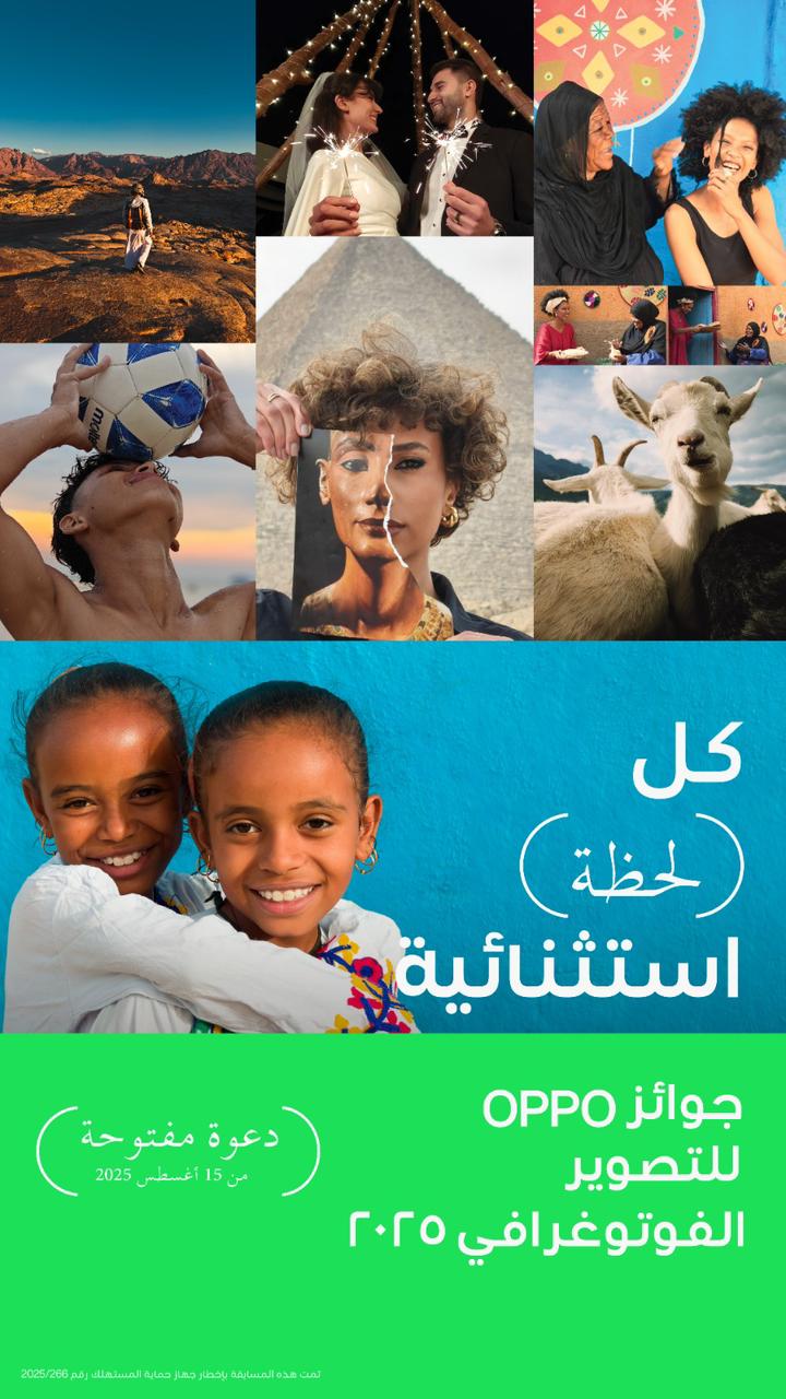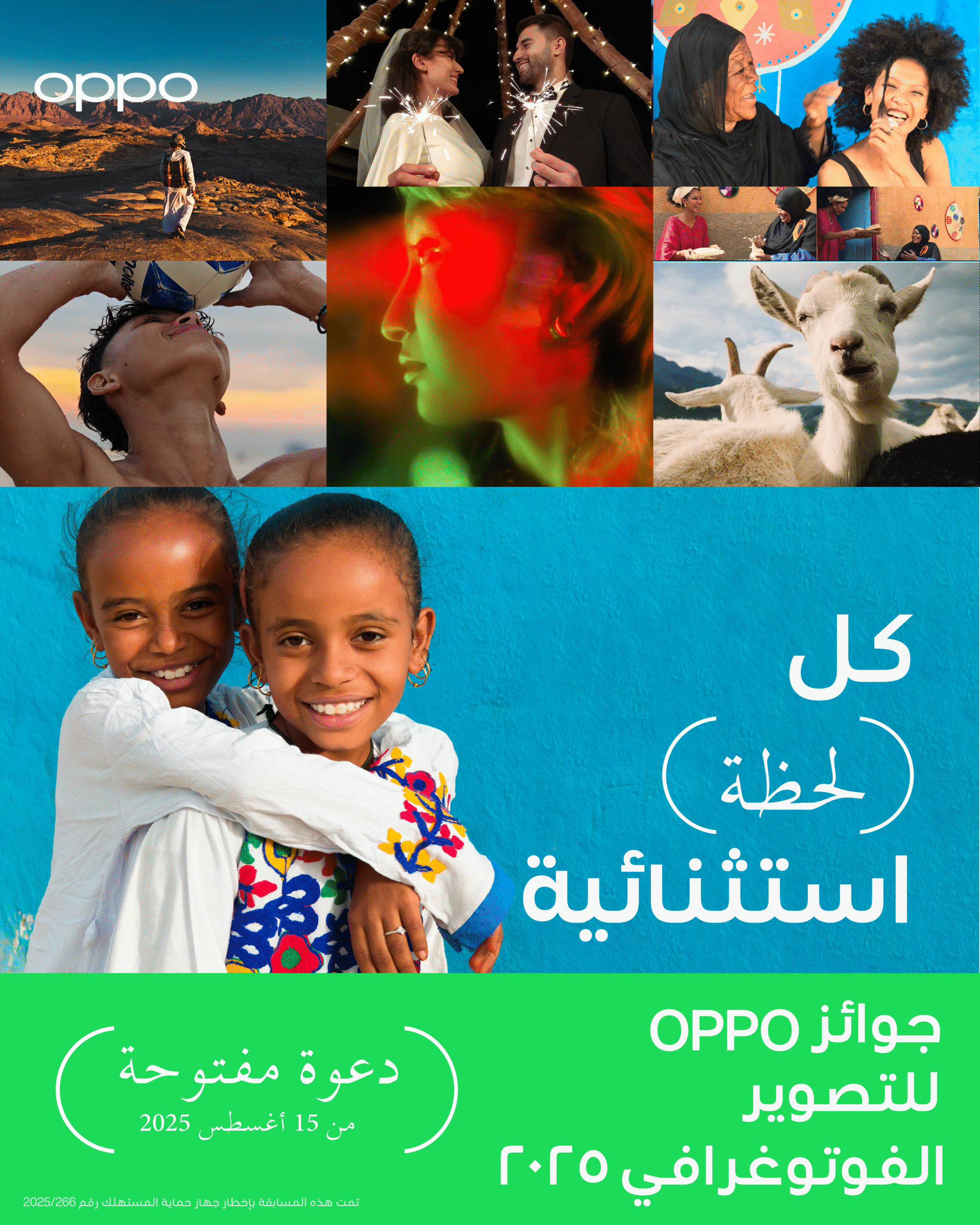 إنطلاقاً من إيمانها العميق بقوة اللحظة، وتجسيداً لفلسفتها العالمية "Make Your Moment- اصنع لحظتك"، أعلنت شركة OPPO عن إطلاق جوائزOPPO للتصوير الفوتوغرافي 2025 على مستوى الجمهورية. وتأتي هذه الخطوة لتجسد رؤية OPPO في تمكين الأفراد من التعبير عن ذاتهم والاستمتاع بالحاضر، وتحويل اللحظات اليومية إلى قصص ملهمة، وهو ما يمثل