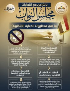 وفي حلقة اليوم تجيب وزارة الشؤون النيابية والقانونية والتواصل السياسي عن كل الأسئلة التي تتعلق بالدعاية الانتخابية،، ومحظوراتها، وحدود الإنفاق، والصمت الدعائي، في شكل إنفوجراف، حتى تكون عملية الاطلاع سهلة ومختصرة أمام المواطن.