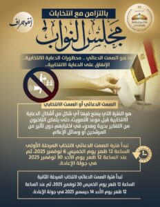 وأوضحت أن حلقة اليوم بعنوان ” بالتزامن مع انتخابات مجلس النواب.. ما هو الصمت الدعائي .. هل توجد محظورات للدعاية الانتخابية.. ما هي حدود الإنفاق على الدعاية الانتخابية.. توعية وتواصل”.