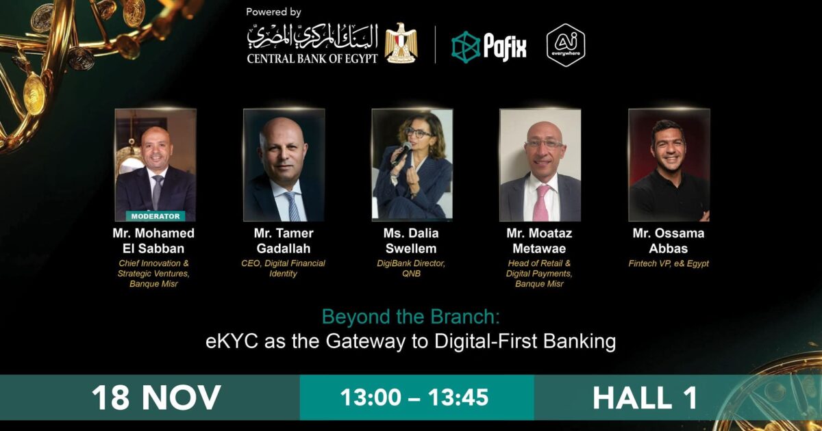 ​شهدت جلسة “ما بعد الفروع: الهوية الرقمية EKYC كبوابة أساسية للتحول نحو البنك الرقمي أولًا” ضمن فعاليات معرض PAFIX على هامش Cairo ICT 2025، مناقشات موسعة حول الدور المحوري للهوية الرقمية في تغيير شكل الخدمات المصرفية في مصر، من خلال إتاحة فتح الحسابات وتنفيذ الخدمات المالية إلكترونيًا دون الحاجة لزيارة الفروع.
