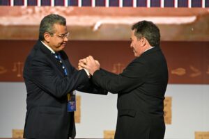 نتطلع جميعاً إلى هذا الحوار البناء، هنا من مدينة السلام ومنصة الحوار الدولي، من شرم الشيخ، مع شركائنا