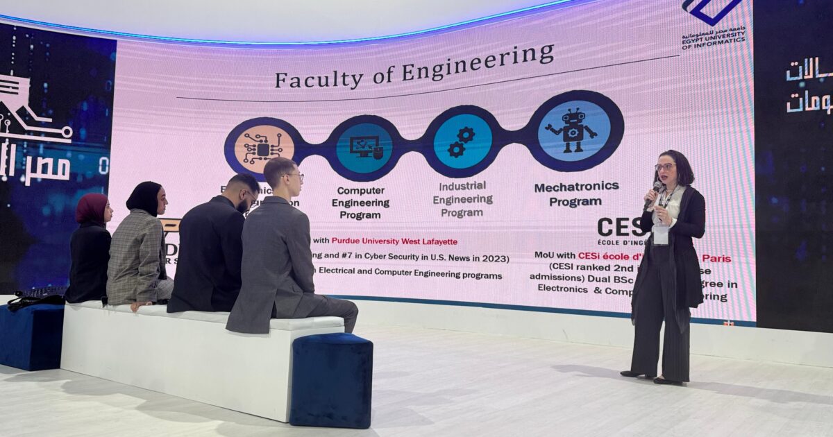 من جانبها أوضحت الدكتورة امل الجمال ان من هؤلاء الخريجين طلاب استكملوا دراساتهم في الجامعات الاجنبية الشريكة لمصر للمعلوماتية مثل جامعة “مينيسوتا” الامريكية المصنفة رقم 35 في علوم الحاسب طبقا لتصنيف US. News لعام 2025، أيضا يتخرج العام المقبل طلابنا الذين يستكملون دراستهم في جامعة “بوردو” الامريكية التي تصنف ضمن افضل عشر جامعات متخصصة في الهندسة طبقا لذات التصنيف، بجانب عدد اخر من طلابنا يتخرجون العام المقبل من جامعة “اوتاوا” الكندية التي تحتل المركز التاسع ضمن افضل الجامعات العالمية طبقا لتصنيف US. News لعام 2025.