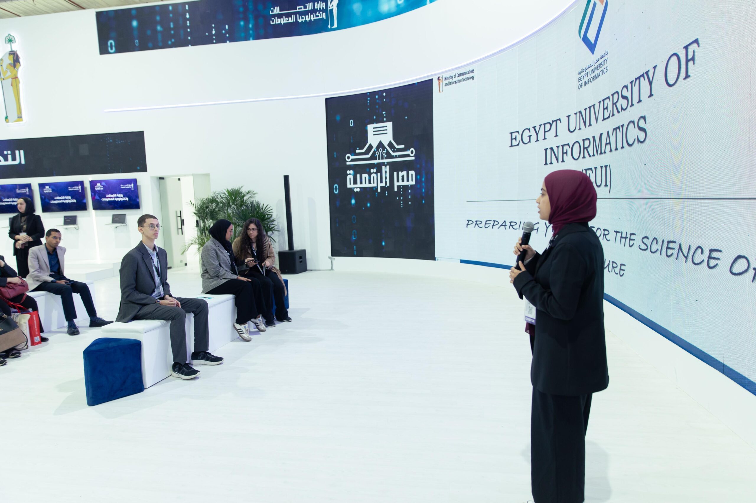وعرضت خلال ورشة العمل إمكانيات جامعة مصر للمعلوماتية، الإمكانيات المتطورة التي تمتلكها الجامعة من معامل ومراكز بحثية لإعداد متخصصين في اهم مجالات تكنولوجيا المعلومات والاتصالات خاصة الذكاء الاصطناعي وهندسة البيانات وصناعة الالكترونيات وعلوم الاتصالات والميكاترونيكس والروبوتات والتكنولوجيا المالية والتسويق الالكتروني، وفنون الرسوم المتحركة وتصميم الألعاب.