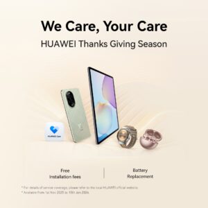ويمكن لعملاء هواوي أيضًا الاستفادة من العروض والخصومات خلال حملة موسم الشكر، بسهولة من خلال خدمة “من الباب إلى الباب”، التي توفرها الشركة دون أي مصاريف شحن، مما يضمن تجربة مريحة وسريعة للحصول على خدمات الصيانة، دون الحاجة إلى زيارة مركز الخدمة شخصيًا.